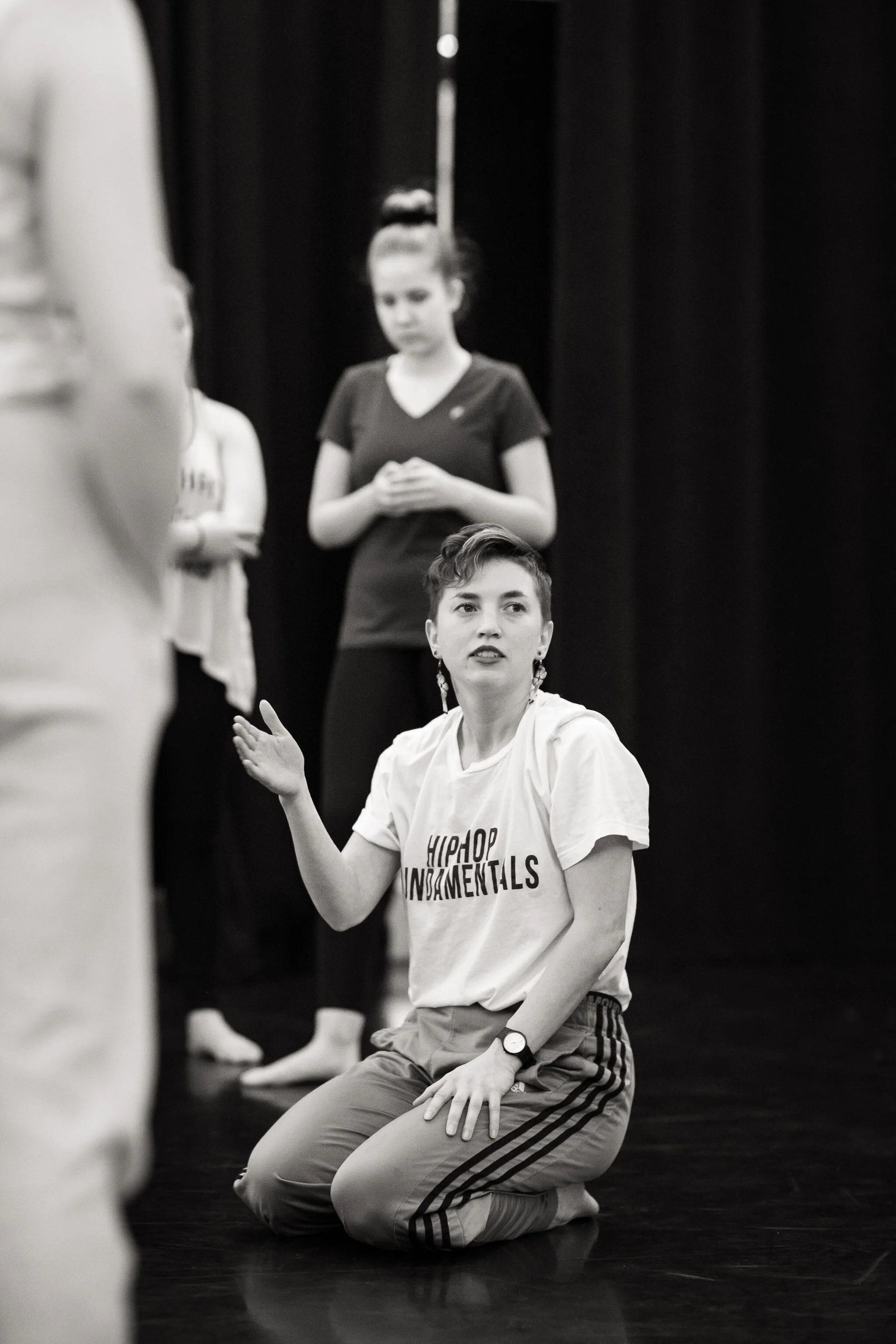 In the history classroom, the dance studio, and on stage, I prioritize teaching skills and strategies to help students grow as people, dancers, and community members. My work is powered by my continuous learning about the social history behind forms of dance and seeking to uplift the intersection of history, identity, and performance. I  give young dancers and thinkers tools to identify cultural hegemonies/power structures and the means to joyfully express themselves outside of the status quo.